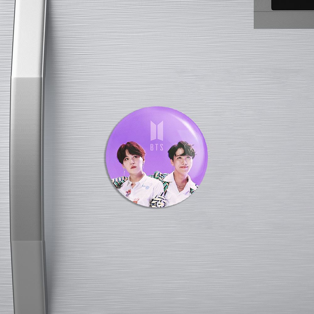 مگنت گروه بی تی اس BTS خندالو با روکش سلفون مات مخملی ضدخش و قطعه پشتی فلزی تولید شده است که آهنربای اتمی بکار برده شده در محصول، بصورت مخفی تعبیه شده ودیده نمی شود. ضمن اینکه گیرایی بسیار بالایی داشته و به هیچ عنوان از روی یخچال نمی افتد.