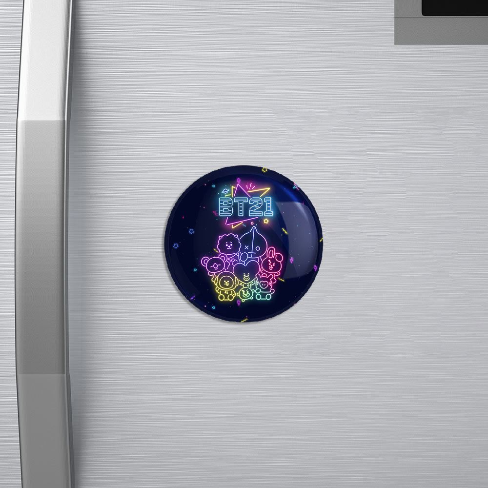 مگنت گروه بی تی اس BTS خندالو با روکش سلفون مات مخملی ضدخش و قطعه پشتی فلزی تولید شده است که آهنربای اتمی بکار برده شده در محصول، بصورت مخفی تعبیه شده ودیده نمی شود. ضمن اینکه گیرایی بسیار بالایی داشته و به هیچ عنوان از روی یخچال نمی افتد.