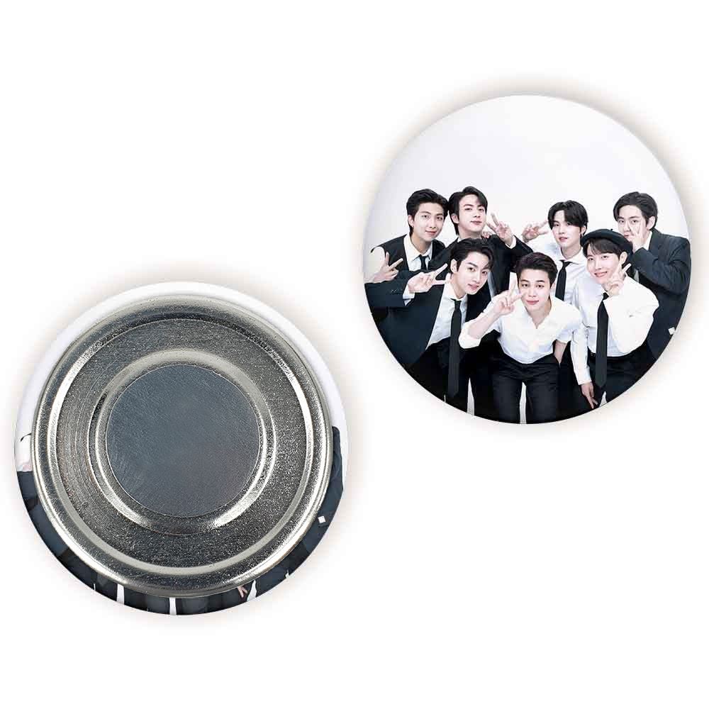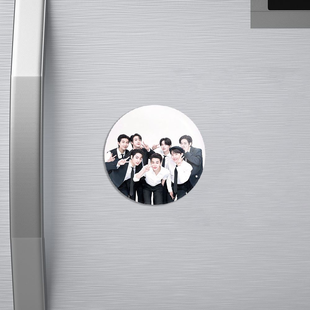 مگنت گروه بی تی اس BTS خندالو با روکش سلفون مات مخملی ضدخش و قطعه پشتی فلزی تولید شده است که آهنربای اتمی بکار برده شده در محصول، بصورت مخفی تعبیه شده ودیده نمی شود. ضمن اینکه گیرایی بسیار بالایی داشته و به هیچ عنوان از روی یخچال نمی افتد.