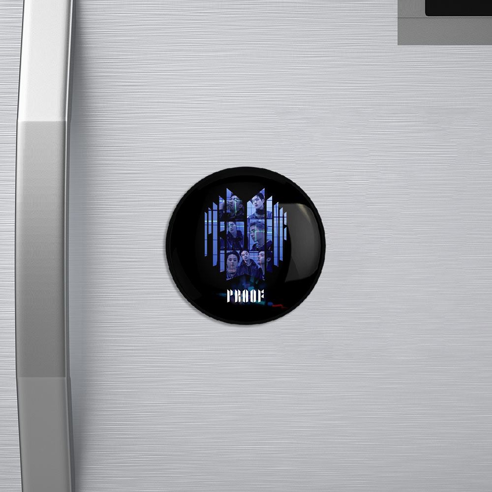 مگنت گروه بی تی اس BTS خندالو با روکش سلفون مات مخملی ضدخش و قطعه پشتی فلزی تولید شده است که آهنربای اتمی بکار برده شده در محصول، بصورت مخفی تعبیه شده ودیده نمی شود. ضمن اینکه گیرایی بسیار بالایی داشته و به هیچ عنوان از روی یخچال نمی افتد.