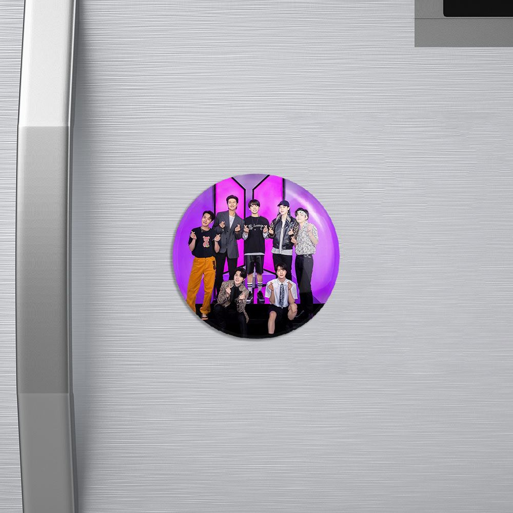 مگنت گروه بی تی اس BTS خندالو با روکش سلفون مات مخملی ضدخش و قطعه پشتی فلزی تولید شده است که آهنربای اتمی بکار برده شده در محصول، بصورت مخفی تعبیه شده ودیده نمی شود. ضمن اینکه گیرایی بسیار بالایی داشته و به هیچ عنوان از روی یخچال نمی افتد.