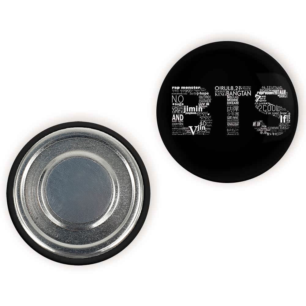 مگنت گروه بی تی اس BTS خندالو با روکش سلفون مات مخملی ضدخش و قطعه پشتی فلزی تولید شده است که آهنربای اتمی بکار برده شده در محصول، بصورت مخفی تعبیه شده ودیده نمی شود. ضمن اینکه گیرایی بسیار بالایی داشته و به هیچ عنوان از روی یخچال نمی افتد.