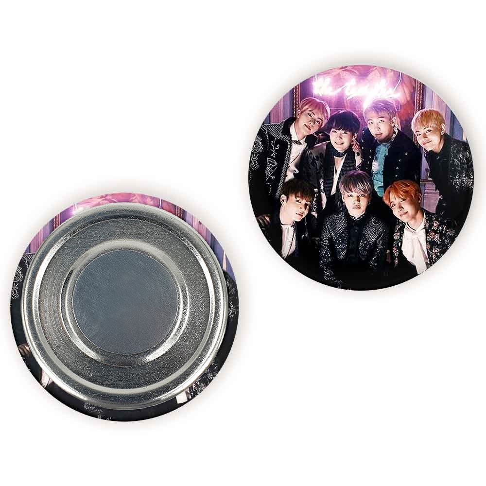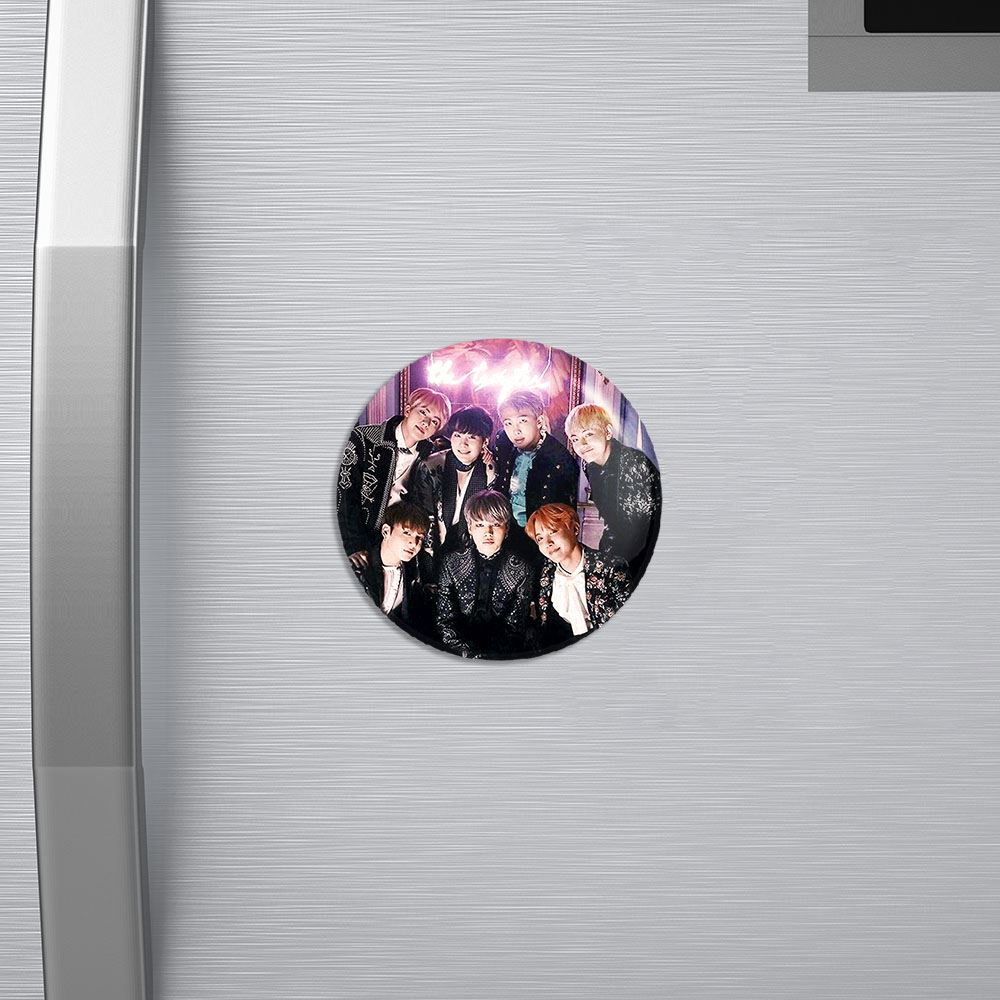 مگنت گروه بی تی اس BTS خندالو با روکش سلفون مات مخملی ضدخش و قطعه پشتی فلزی تولید شده است که آهنربای اتمی بکار برده شده در محصول، بصورت مخفی تعبیه شده ودیده نمی شود. ضمن اینکه گیرایی بسیار بالایی داشته و به هیچ عنوان از روی یخچال نمی افتد.
