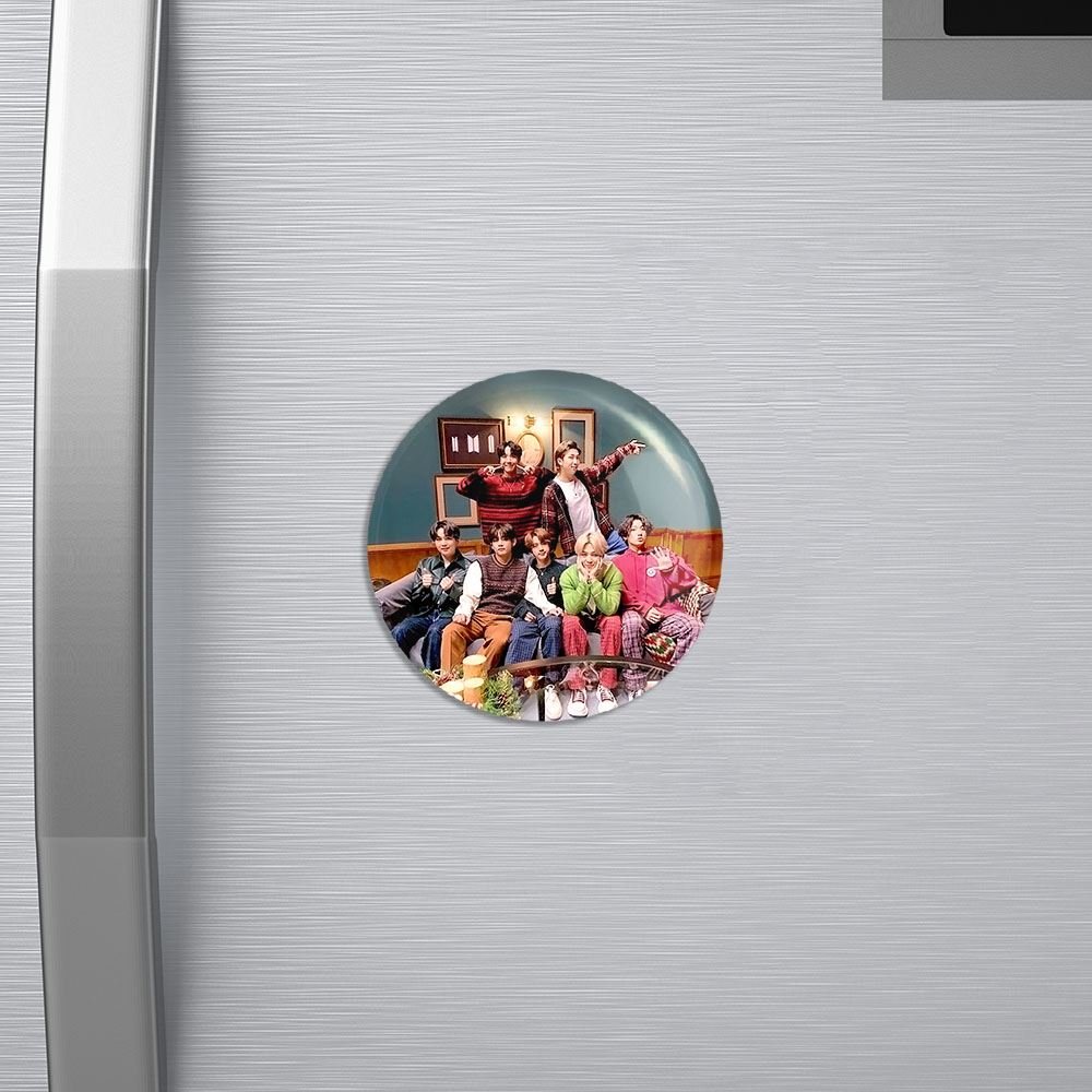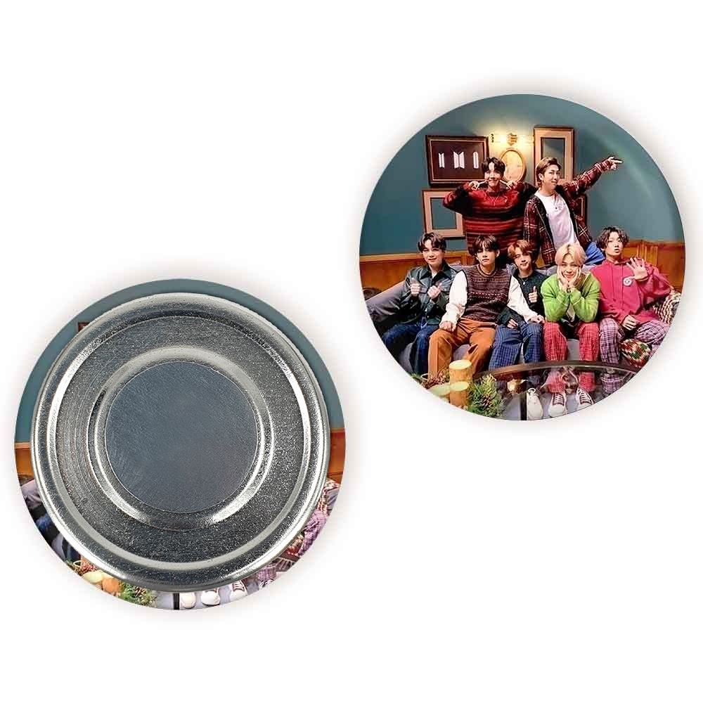 مگنت گروه بی تی اس BTS خندالو با روکش سلفون مات مخملی ضدخش و قطعه پشتی فلزی تولید شده است که آهنربای اتمی بکار برده شده در محصول، بصورت مخفی تعبیه شده ودیده نمی شود. ضمن اینکه گیرایی بسیار بالایی داشته و به هیچ عنوان از روی یخچال نمی افتد.
