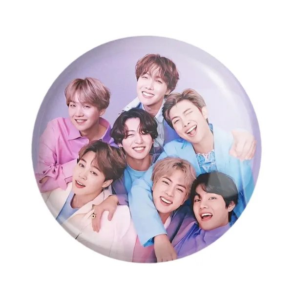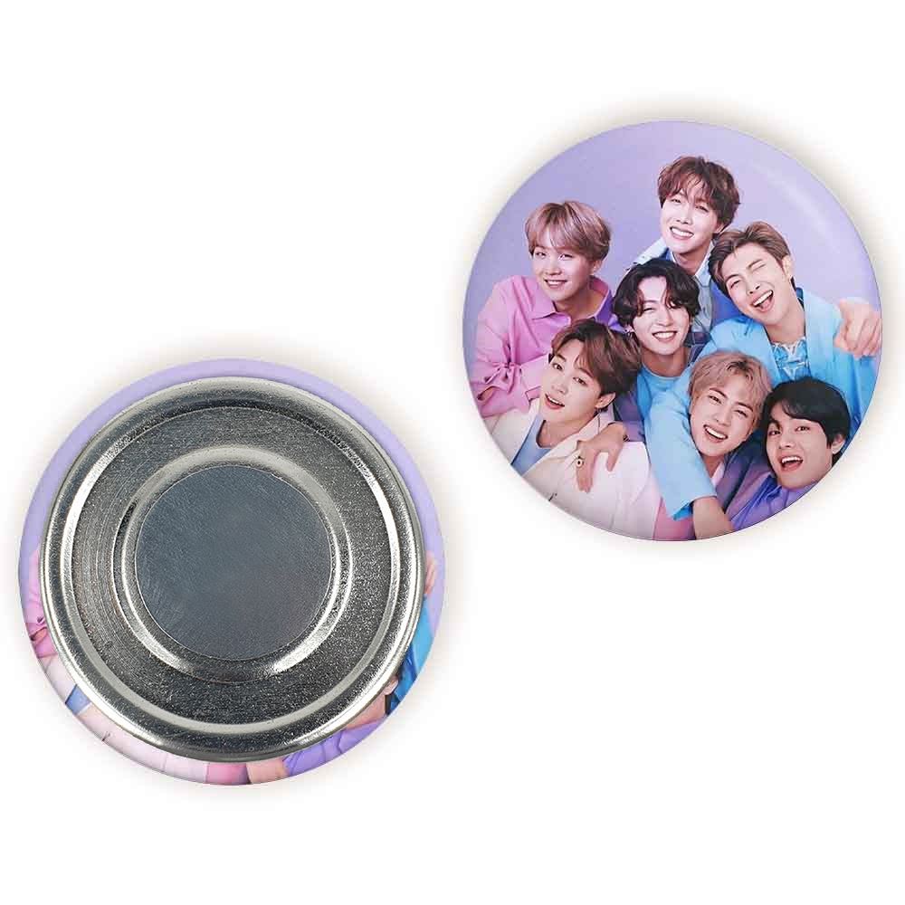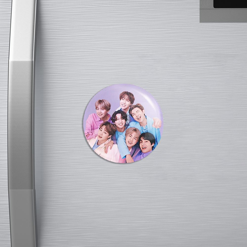 مگنت گروه بی تی اس BTS خندالو با روکش سلفون مات مخملی ضدخش و قطعه پشتی فلزی تولید شده است که آهنربای اتمی بکار برده شده در محصول، بصورت مخفی تعبیه شده ودیده نمی شود. ضمن اینکه گیرایی بسیار بالایی داشته و به هیچ عنوان از روی یخچال نمی افتد.