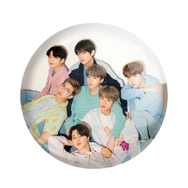 مگنت گروه بی تی اس BTS خندالو با روکش سلفون مات مخملی ضدخش و قطعه پشتی فلزی تولید شده است که آهنربای اتمی بکار برده شده در محصول، بصورت مخفی تعبیه شده ودیده نمی شود. ضمن اینکه گیرایی بسیار بالایی داشته و به هیچ عنوان از روی یخچال نمی افتد.