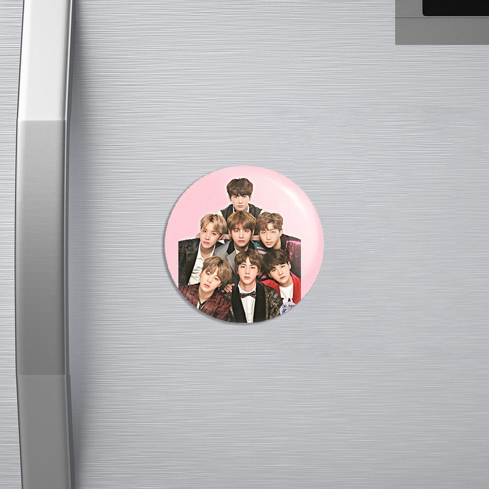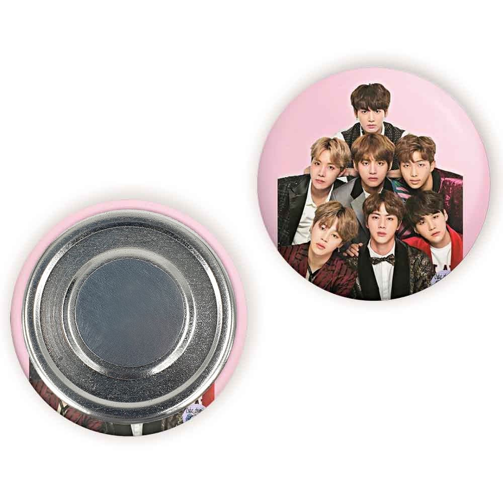 مگنت گروه بی تی اس BTS خندالو با روکش سلفون مات مخملی ضدخش و قطعه پشتی فلزی تولید شده است که آهنربای اتمی بکار برده شده در محصول، بصورت مخفی تعبیه شده ودیده نمی شود. ضمن اینکه گیرایی بسیار بالایی داشته و به هیچ عنوان از روی یخچال نمی افتد.