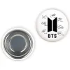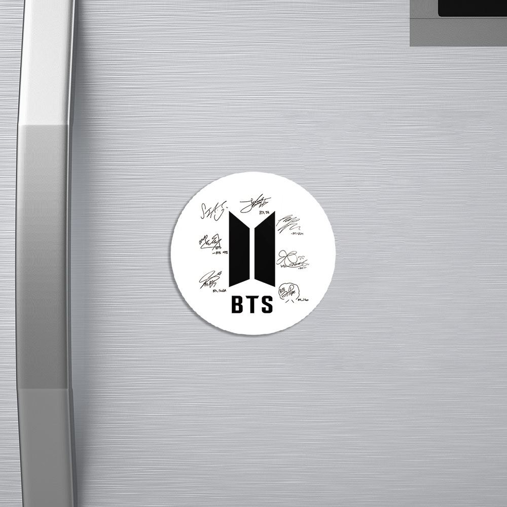 مگنت گروه بی تی اس BTS خندالو با روکش سلفون مات مخملی ضدخش و قطعه پشتی فلزی تولید شده است که آهنربای اتمی بکار برده شده در محصول، بصورت مخفی تعبیه شده ودیده نمی شود. ضمن اینکه گیرایی بسیار بالایی داشته و به هیچ عنوان از روی یخچال نمی افتد.
