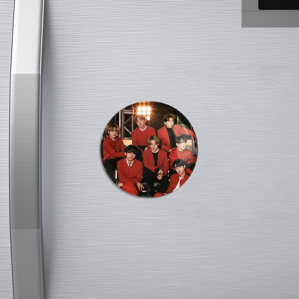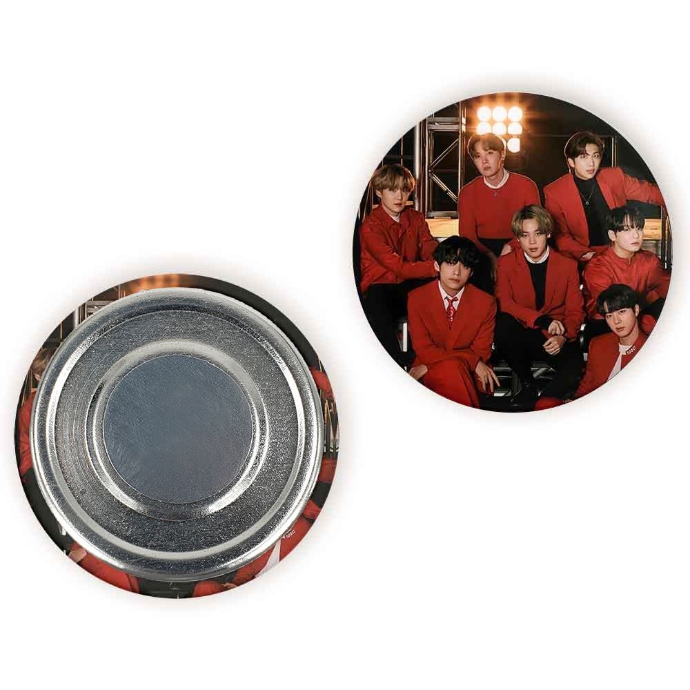 مگنت گروه بی تی اس BTS خندالو با روکش سلفون مات مخملی ضدخش و قطعه پشتی فلزی تولید شده است که آهنربای اتمی بکار برده شده در محصول، بصورت مخفی تعبیه شده ودیده نمی شود. ضمن اینکه گیرایی بسیار بالایی داشته و به هیچ عنوان از روی یخچال نمی افتد.