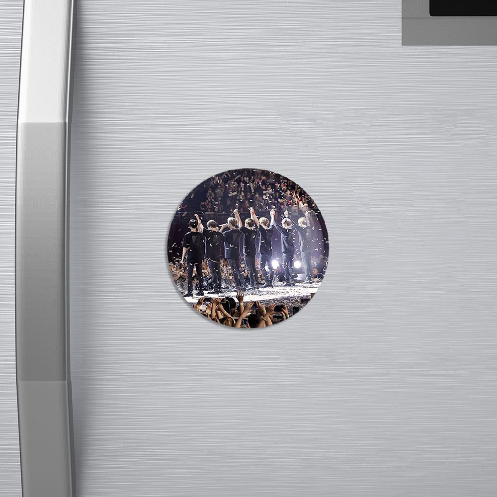 مگنت گروه بی تی اس BTS خندالو با روکش سلفون مات مخملی ضدخش و قطعه پشتی فلزی تولید شده است که آهنربای اتمی بکار برده شده در محصول، بصورت مخفی تعبیه شده ودیده نمی شود. ضمن اینکه گیرایی بسیار بالایی داشته و به هیچ عنوان از روی یخچال نمی افتد.