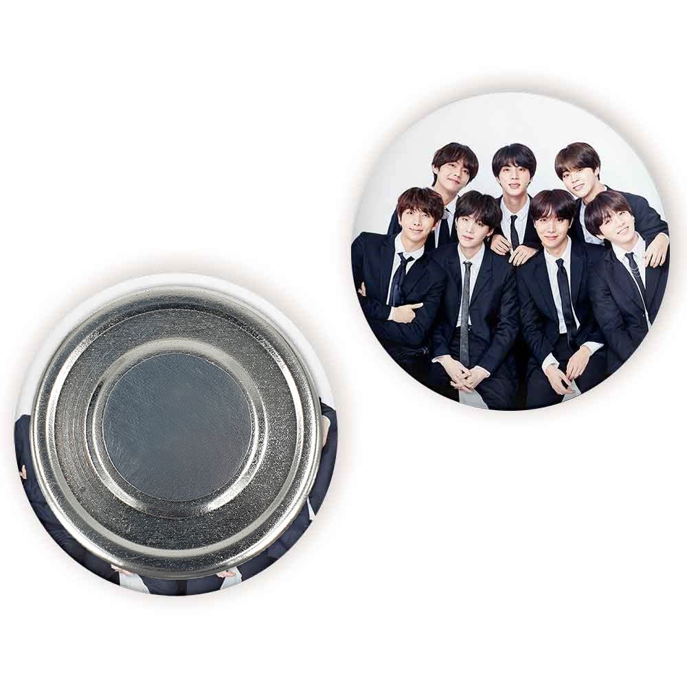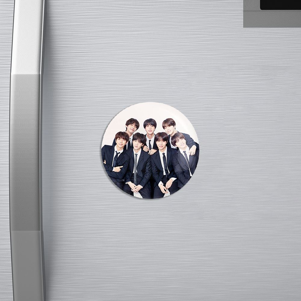 مگنت گروه بی تی اس BTS خندالو با روکش سلفون مات مخملی ضدخش و قطعه پشتی فلزی تولید شده است که آهنربای اتمی بکار برده شده در محصول، بصورت مخفی تعبیه شده ودیده نمی شود. ضمن اینکه گیرایی بسیار بالایی داشته و به هیچ عنوان از روی یخچال نمی افتد.