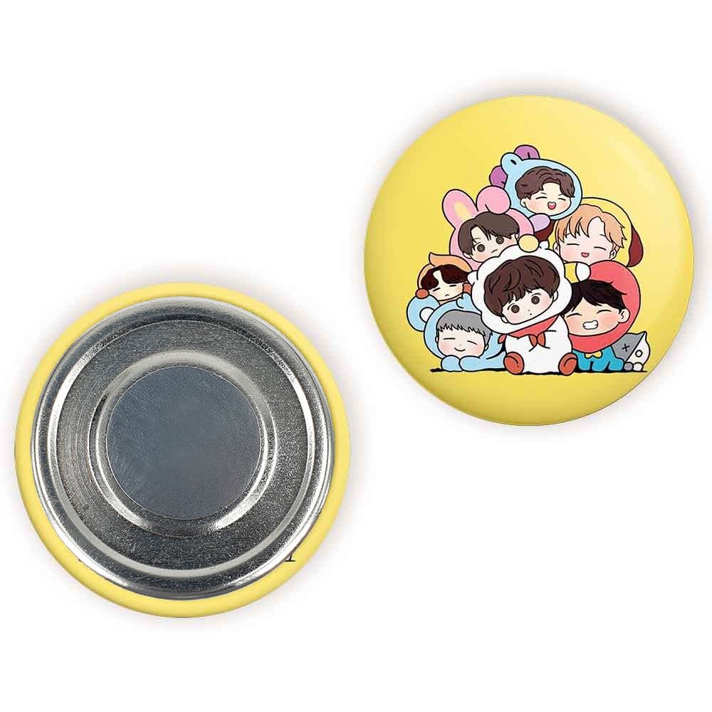 مگنت گروه بی تی اس BTS خندالو با روکش سلفون مات مخملی ضدخش و قطعه پشتی فلزی تولید شده است که آهنربای اتمی بکار برده شده در محصول، بصورت مخفی تعبیه شده ودیده نمی شود. ضمن اینکه گیرایی بسیار بالایی داشته و به هیچ عنوان از روی یخچال نمی افتد.
