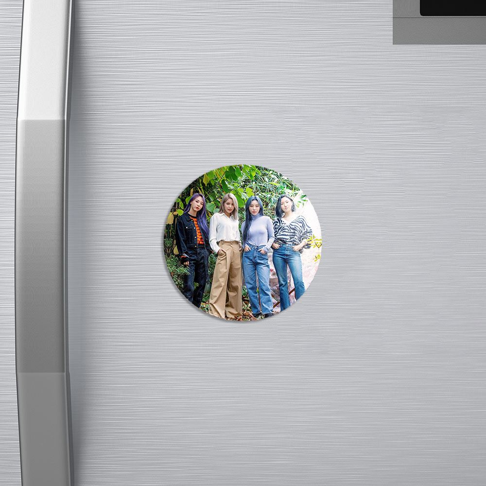 مگنت گروه مامامو Mamamoo خندالو با روکش سلفون مات مخملی ضدخش و قطعه پشتی فلزی تولید شده است که آهنربای اتمی بکار برده شده در محصول، بصورت مخفی تعبیه شده ودیده نمی شود. ضمن اینکه گیرایی بسیار بالایی داشته و به هیچ عنوان از روی یخچال نمی افتد.