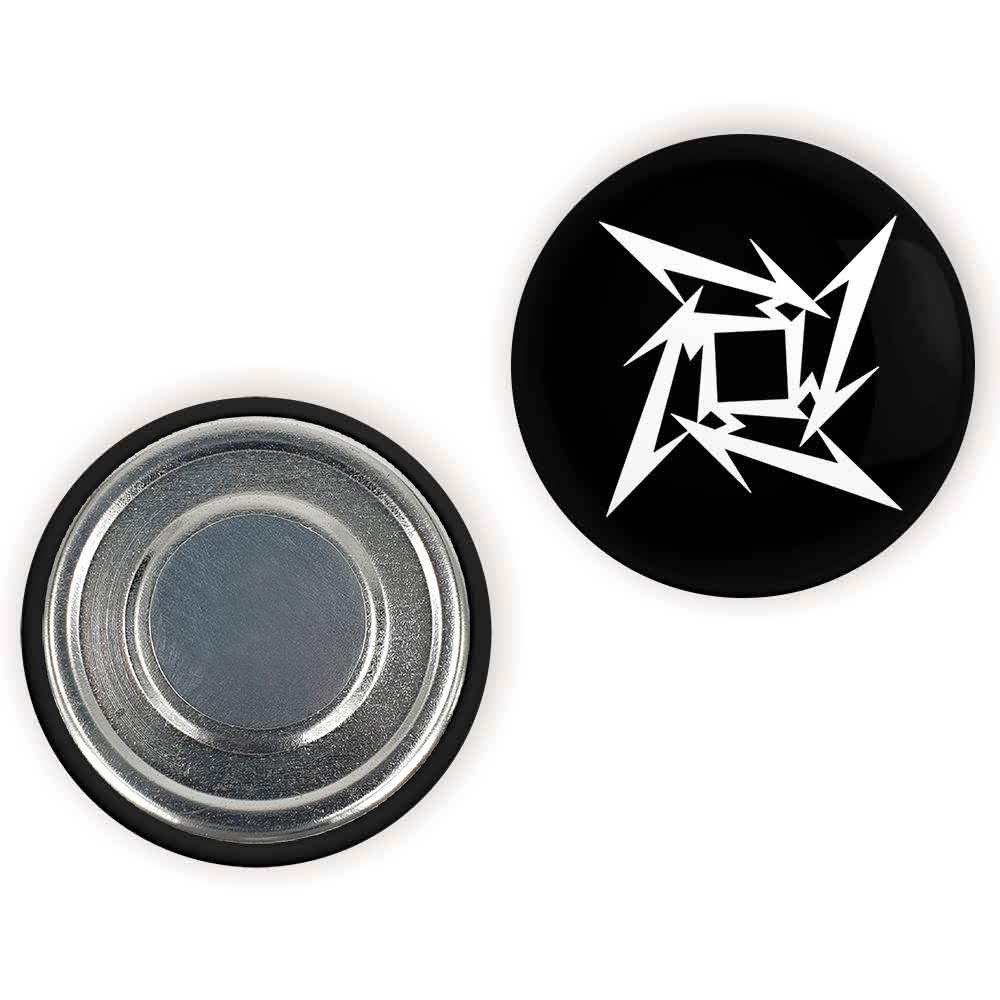 مگنت گروه موسیقی متالیکا Metallica خندالو با روکش سلفون مات مخملی ضدخش و قطعه پشتی فلزی تولید شده است که آهنربای اتمی بکار برده شده در محصول، بصورت مخفی تعبیه شده ودیده نمی شود. ضمن اینکه گیرایی بسیار بالایی داشته و به هیچ عنوان از روی یخچال نمی افتد.