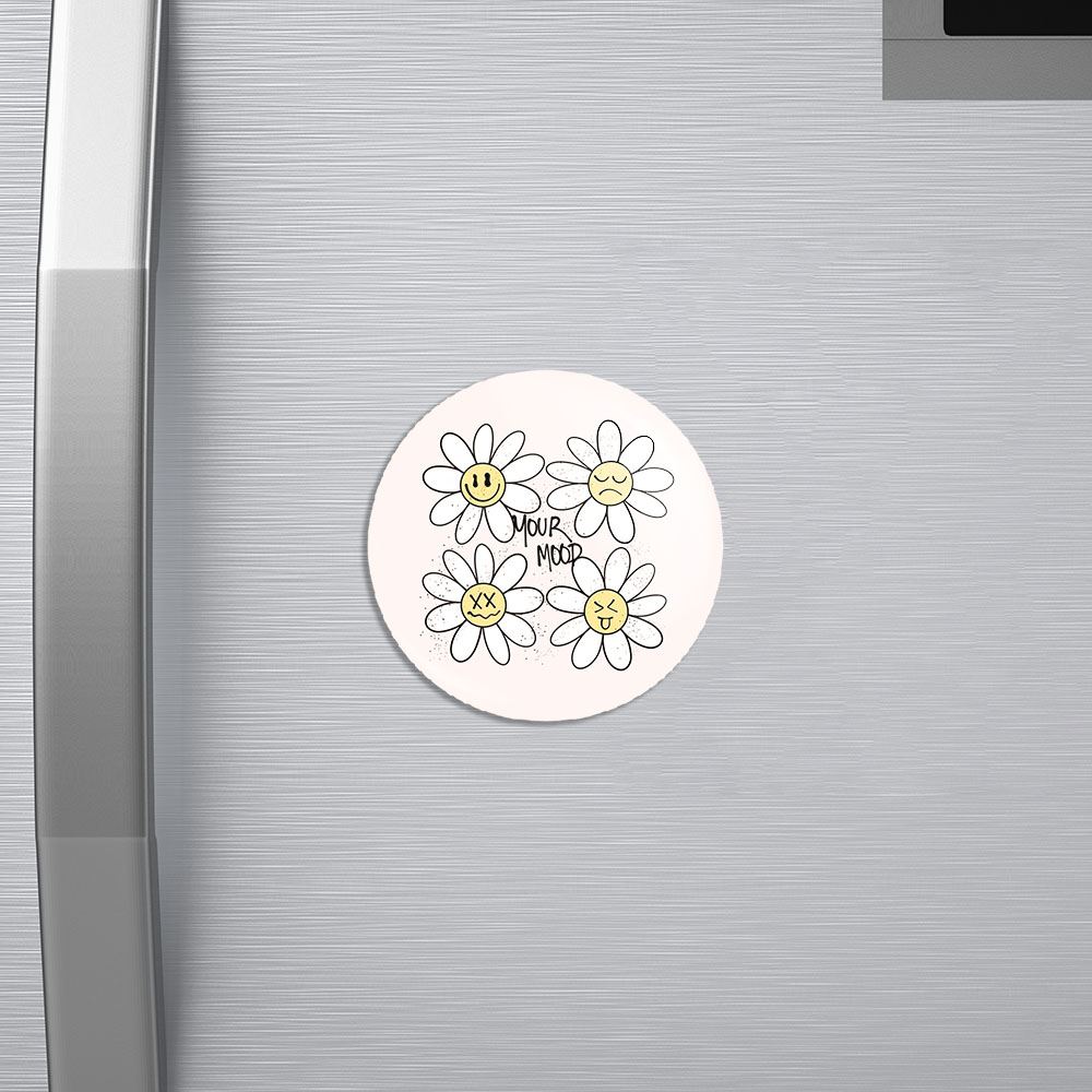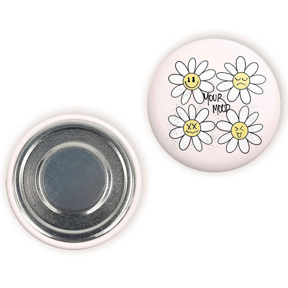 مگنت گل بابونه خندالو با روکش سلفون مات مخملی ضدخش و قطعه پشتی فلزی تولید شده است که آهنربای اتمی بکار برده شده در محصول، بصورت مخفی تعبیه شده ودیده نمی شود. ضمن اینکه گیرایی بسیار بالایی داشته و به هیچ عنوان از روی یخچال نمی افتد.