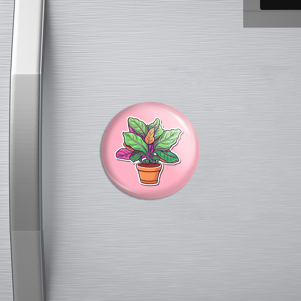 مگنت گل و گیاه خندالو با روکش سلفون مات مخملی ضدخش و قطعه پشتی فلزی تولید شده است که آهنربای اتمی بکار برده شده در محصول، بصورت مخفی تعبیه شده ودیده نمی شود. ضمن اینکه گیرایی بسیار بالایی داشته و به هیچ عنوان از روی یخچال نمی افتد.