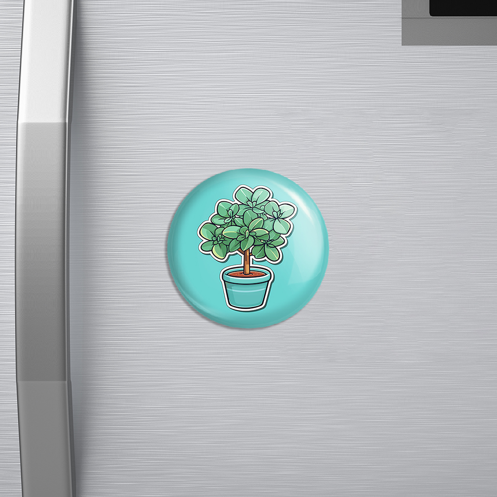 مگنت گل و گیاه خندالو با روکش سلفون مات مخملی ضدخش و قطعه پشتی فلزی تولید شده است که آهنربای اتمی بکار برده شده در محصول، بصورت مخفی تعبیه شده ودیده نمی شود. ضمن اینکه گیرایی بسیار بالایی داشته و به هیچ عنوان از روی یخچال نمی افتد.