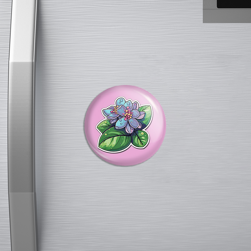 مگنت گل و گیاه خندالو با روکش سلفون مات مخملی ضدخش و قطعه پشتی فلزی تولید شده است که آهنربای اتمی بکار برده شده در محصول، بصورت مخفی تعبیه شده ودیده نمی شود. ضمن اینکه گیرایی بسیار بالایی داشته و به هیچ عنوان از روی یخچال نمی افتد.