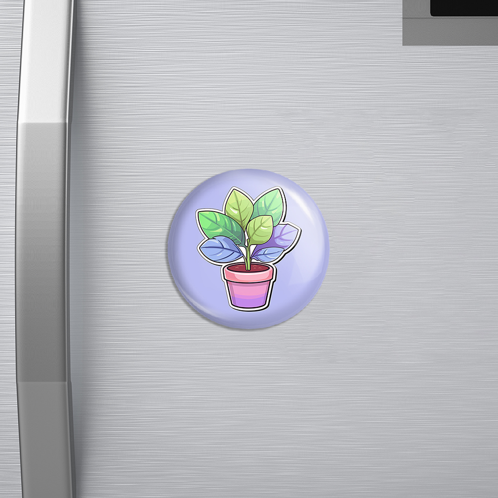 مگنت گل و گیاه خندالو با روکش سلفون مات مخملی ضدخش و قطعه پشتی فلزی تولید شده است که آهنربای اتمی بکار برده شده در محصول، بصورت مخفی تعبیه شده ودیده نمی شود. ضمن اینکه گیرایی بسیار بالایی داشته و به هیچ عنوان از روی یخچال نمی افتد.