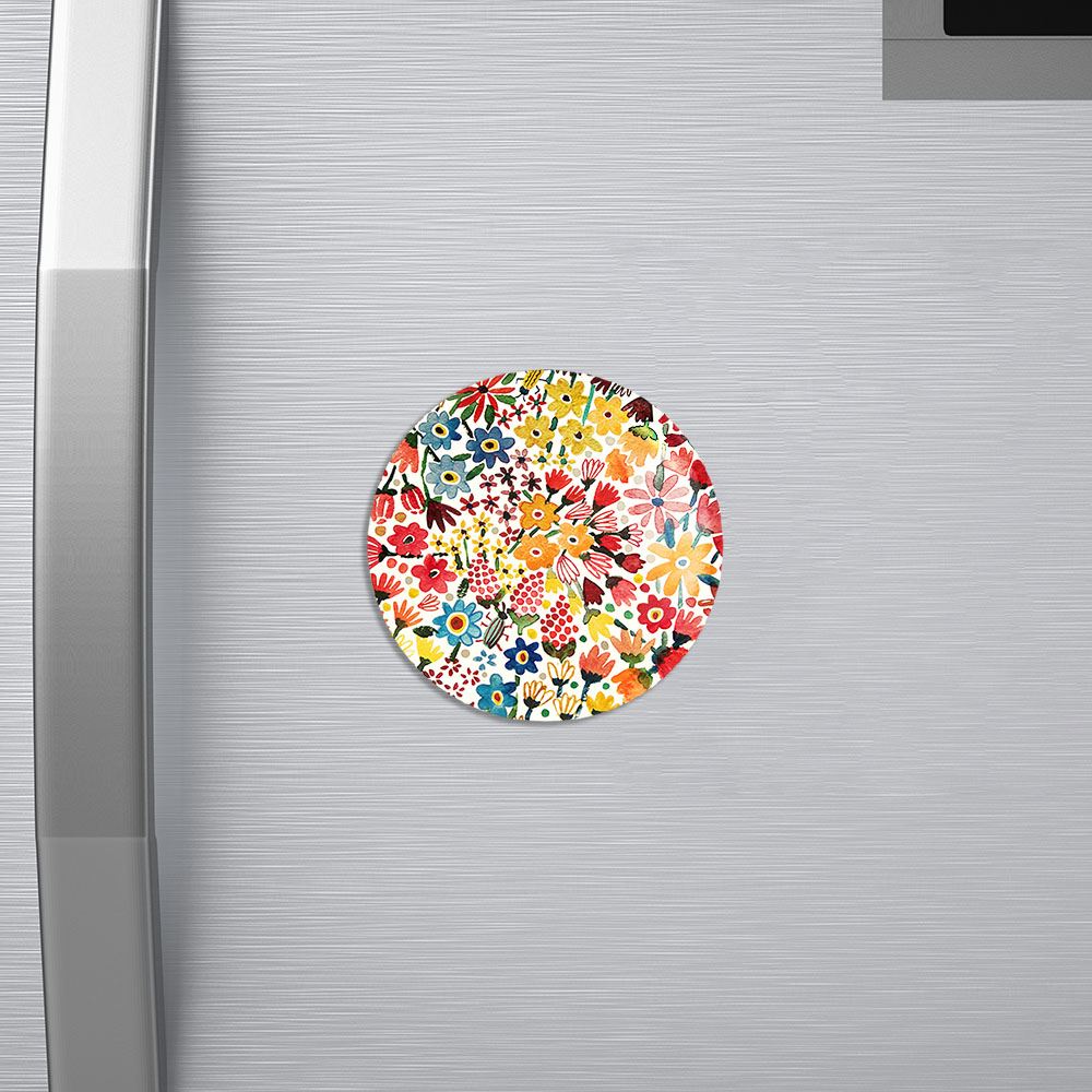 مگنت گل گلی خندالو با روکش سلفون مات مخملی ضدخش و قطعه پشتی فلزی تولید شده است که آهنربای اتمی بکار برده شده در محصول، بصورت مخفی تعبیه شده ودیده نمی شود. ضمن اینکه گیرایی بسیار بالایی داشته و به هیچ عنوان از روی یخچال نمی افتد.