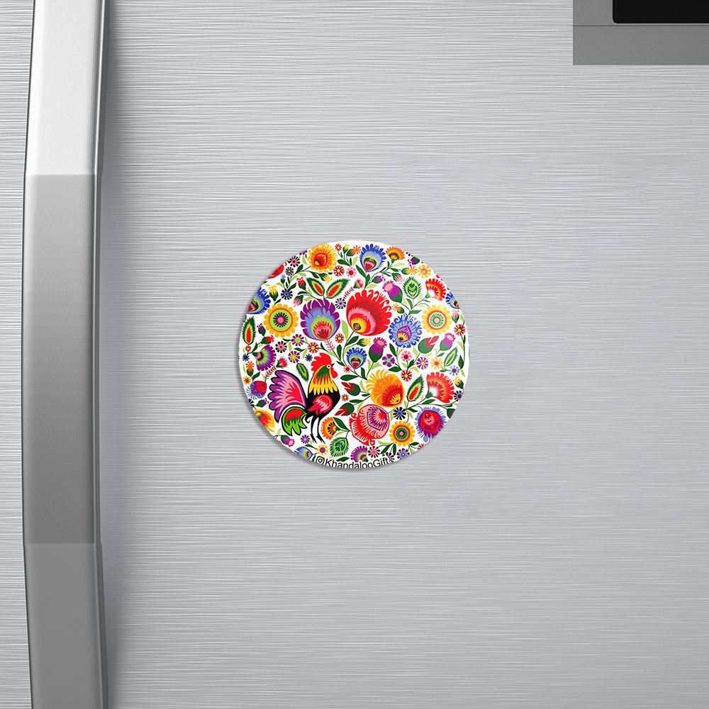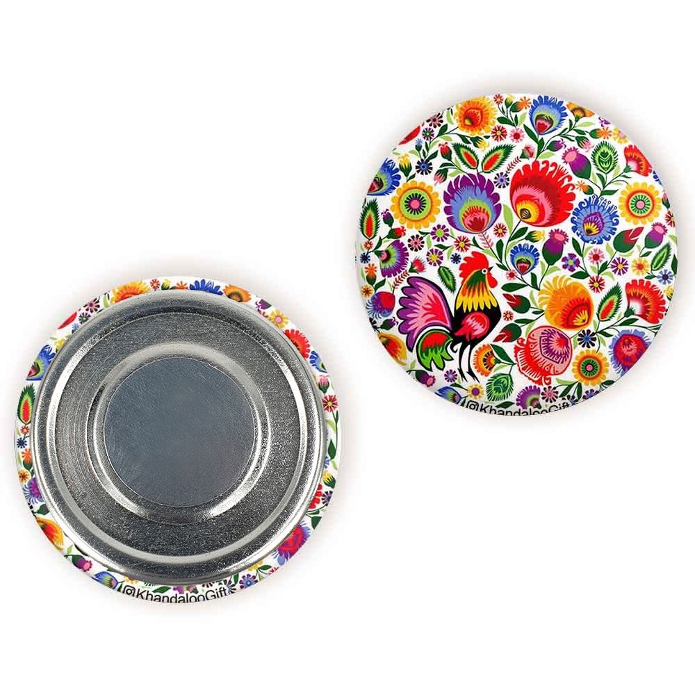 مگنت گل گلی خندالو با روکش سلفون مات مخملی ضدخش و قطعه پشتی فلزی تولید شده است که آهنربای اتمی بکار برده شده در محصول، بصورت مخفی تعبیه شده ودیده نمی شود. ضمن اینکه گیرایی بسیار بالایی داشته و به هیچ عنوان از روی یخچال نمی افتد.