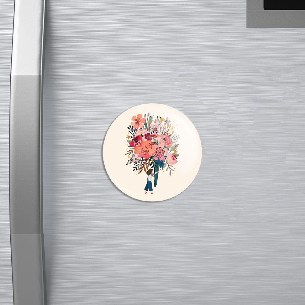 مگنت گل خندالو با روکش سلفون مات مخملی ضدخش و قطعه پشتی فلزی تولید شده است که آهنربای اتمی بکار برده شده در محصول، بصورت مخفی تعبیه شده ودیده نمی شود. ضمن اینکه گیرایی بسیار بالایی داشته و به هیچ عنوان از روی یخچال نمی افتد.