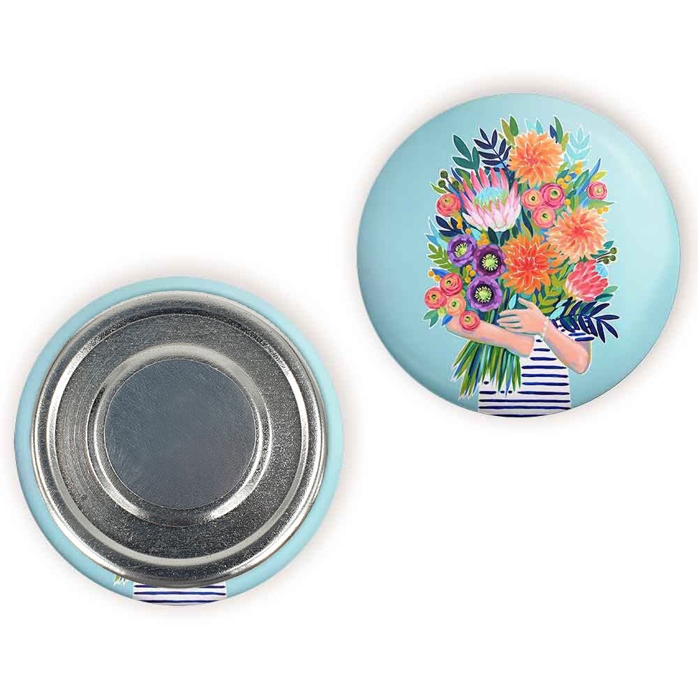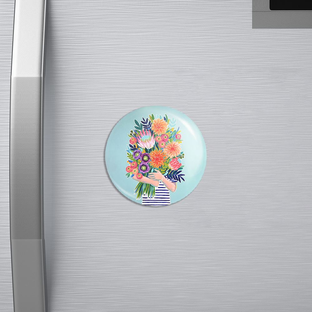 مگنت گل خندالو با روکش سلفون مات مخملی ضدخش و قطعه پشتی فلزی تولید شده است که آهنربای اتمی بکار برده شده در محصول، بصورت مخفی تعبیه شده ودیده نمی شود. ضمن اینکه گیرایی بسیار بالایی داشته و به هیچ عنوان از روی یخچال نمی افتد.
