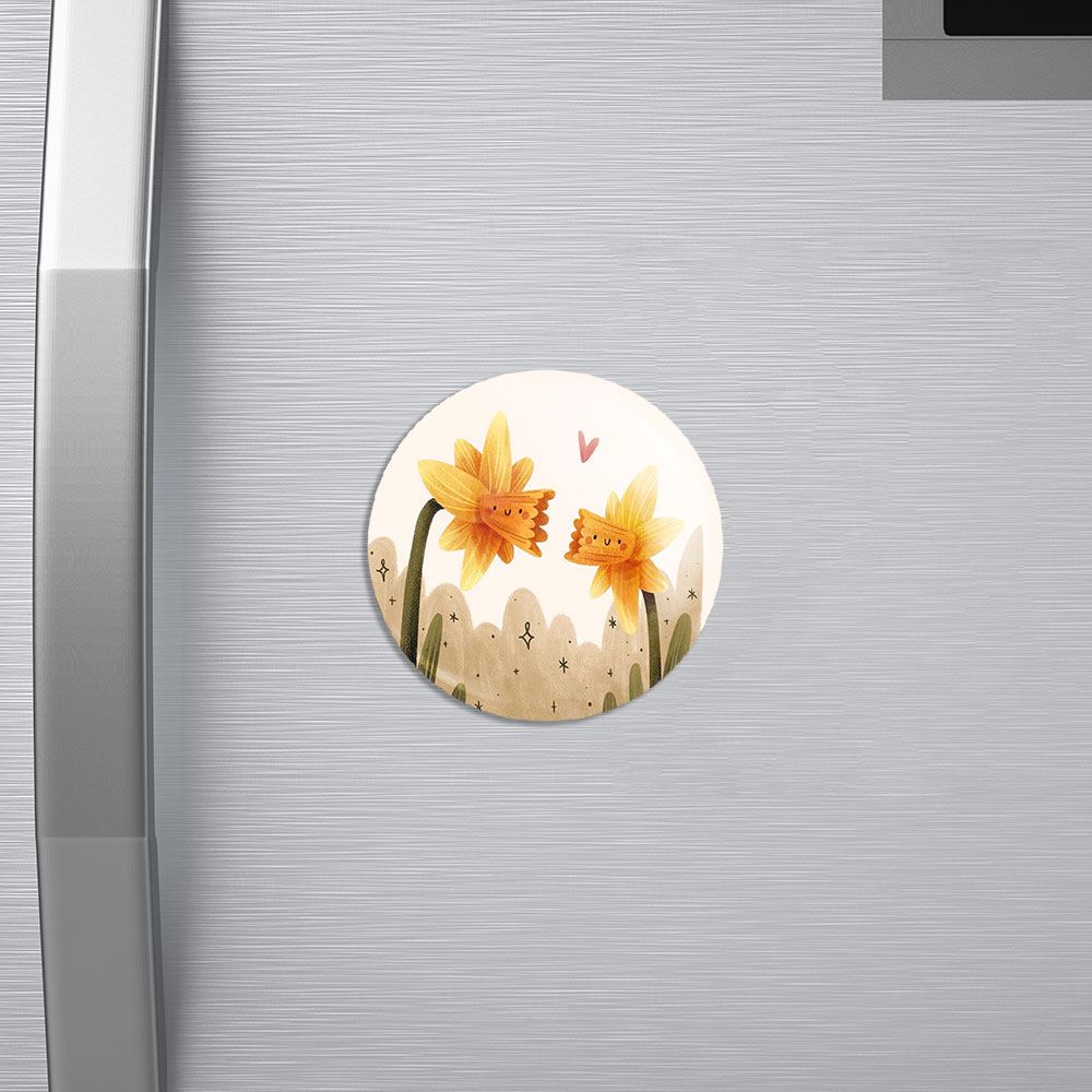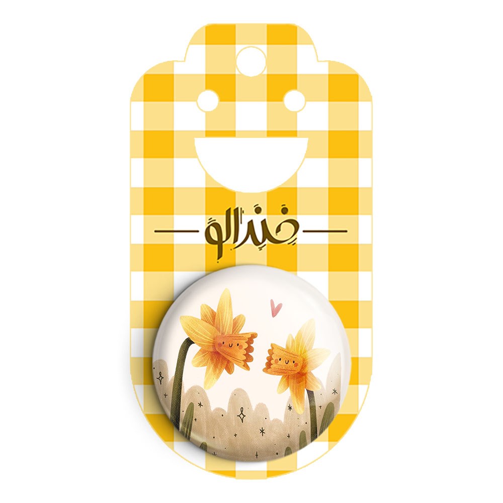 مگنت گل خندالو با روکش سلفون مات مخملی ضدخش و قطعه پشتی فلزی تولید شده است که آهنربای اتمی بکار برده شده در محصول، بصورت مخفی تعبیه شده ودیده نمی شود. ضمن اینکه گیرایی بسیار بالایی داشته و به هیچ عنوان از روی یخچال نمی افتد.