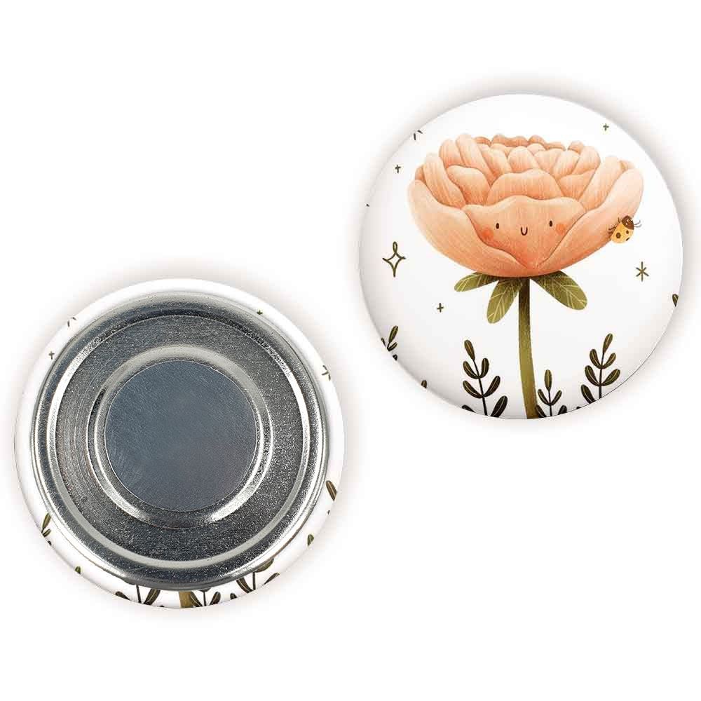 مگنت گل خندالو با روکش سلفون مات مخملی ضدخش و قطعه پشتی فلزی تولید شده است که آهنربای اتمی بکار برده شده در محصول، بصورت مخفی تعبیه شده ودیده نمی شود. ضمن اینکه گیرایی بسیار بالایی داشته و به هیچ عنوان از روی یخچال نمی افتد.
