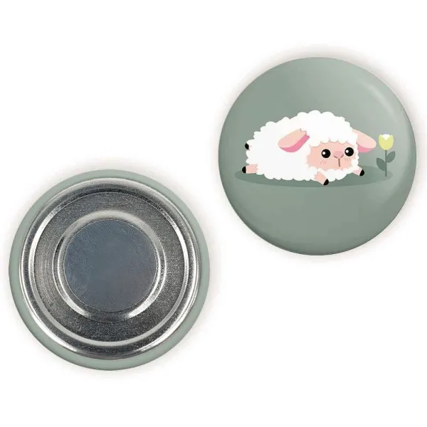 مگنت گوسفند بامزه خندالو با روکش سلفون مات مخملی ضدخش و قطعه پشتی فلزی تولید شده است که آهنربای اتمی بکار برده شده در محصول، بصورت مخفی تعبیه شده ودیده نمی شود. ضمن اینکه گیرایی بسیار بالایی داشته و به هیچ عنوان از روی یخچال نمی افتد.