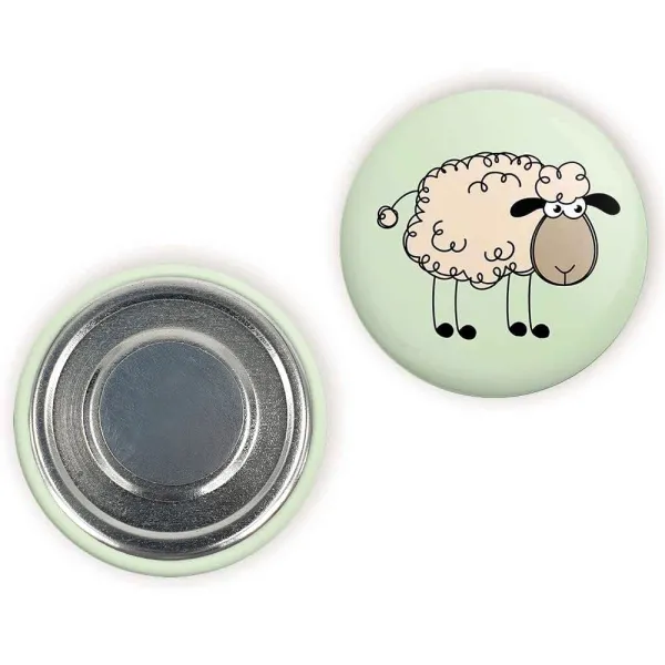 مگنت گوسفند بامزه خندالو با روکش سلفون مات مخملی ضدخش و قطعه پشتی فلزی تولید شده است که آهنربای اتمی بکار برده شده در محصول، بصورت مخفی تعبیه شده ودیده نمی شود. ضمن اینکه گیرایی بسیار بالایی داشته و به هیچ عنوان از روی یخچال نمی افتد.