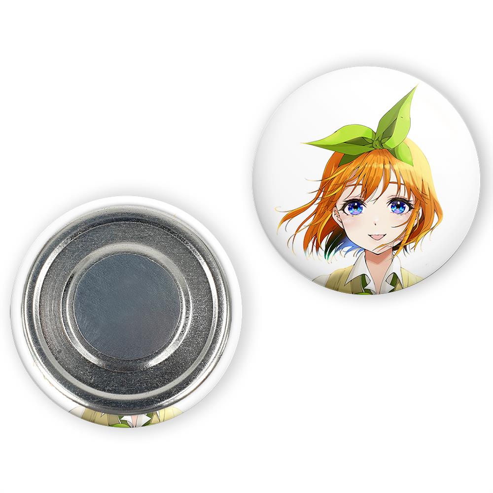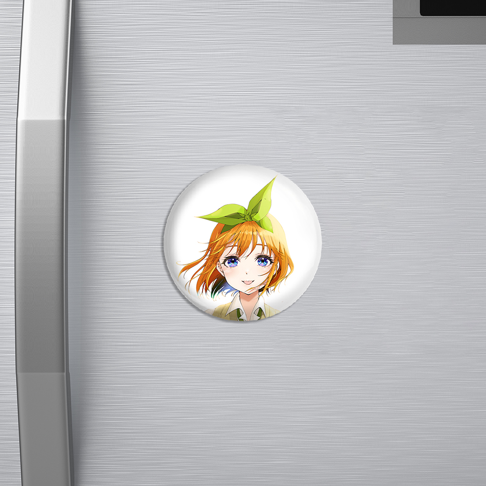 مگنت یوتسوبا انیمه پنج عروس مساوی خندالو با روکش سلفون مات مخملی ضدخش و قطعه پشتی فلزی تولید شده است که آهنربای اتمی بکار برده شده در محصول، بصورت مخفی تعبیه شده ودیده نمی شود. ضمن اینکه گیرایی بسیار بالایی داشته و به هیچ عنوان از روی یخچال نمی افتد.