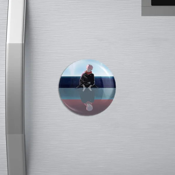 مگنت یوجی و سوکونا انیمه جوجوتسو کایزن خندالو با روکش سلفون مات مخملی ضدخش و قطعه پشتی فلزی تولید شده است که آهنربای اتمی بکار برده شده در محصول، بصورت مخفی تعبیه شده ودیده نمی شود. ضمن اینکه گیرایی بسیار بالایی داشته و به هیچ عنوان از روی یخچال نمی افتد.