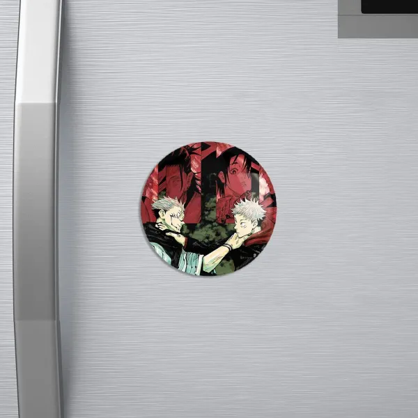 مگنت یوجی و سوکونا انیمه جوجوتسو کایزن خندالو با روکش سلفون مات مخملی ضدخش و قطعه پشتی فلزی تولید شده است که آهنربای اتمی بکار برده شده در محصول، بصورت مخفی تعبیه شده ودیده نمی شود. ضمن اینکه گیرایی بسیار بالایی داشته و به هیچ عنوان از روی یخچال نمی افتد.