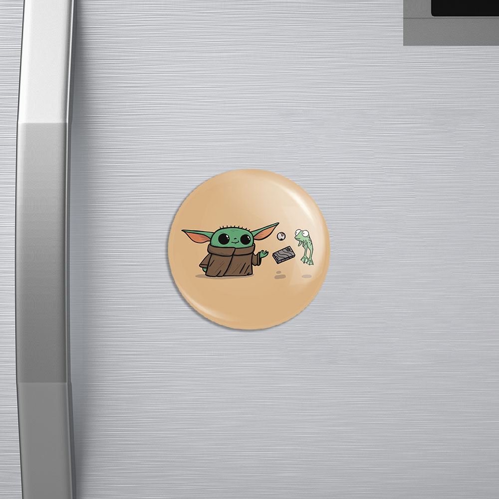 مگنت یودا سریال جنگ ستارگان خندالو با روکش سلفون مات مخملی ضدخش و قطعه پشتی فلزی تولید شده است که آهنربای اتمی بکار برده شده در محصول، بصورت مخفی تعبیه شده ودیده نمی شود. ضمن اینکه گیرایی بسیار بالایی داشته و به هیچ عنوان از روی یخچال نمی افتد.