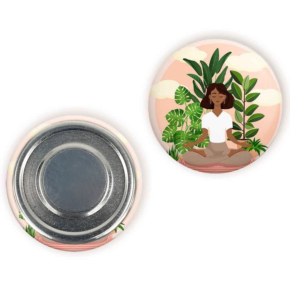 مگنت یوگا خندالو با روکش سلفون مات مخملی ضدخش و قطعه پشتی فلزی تولید شده است که آهنربای اتمی بکار برده شده در محصول، بصورت مخفی تعبیه شده ودیده نمی شود. ضمن اینکه گیرایی بسیار بالایی داشته و به هیچ عنوان از روی یخچال نمی افتد.
