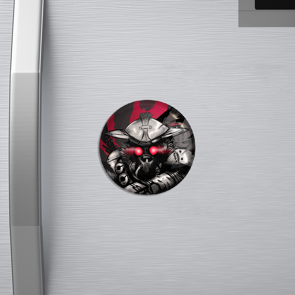 مگنت bloodhound ایکس لجند خندالو با روکش سلفون مات مخملی ضدخش و قطعه پشتی فلزی تولید شده است که آهنربای اتمی بکار برده شده در محصول، بصورت مخفی تعبیه شده ودیده نمی شود. ضمن اینکه گیرایی بسیار بالایی داشته و به هیچ عنوان از روی یخچال نمی افتد.