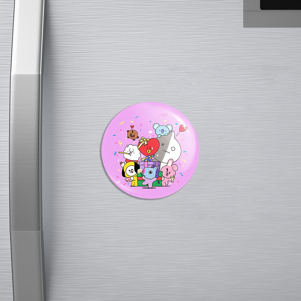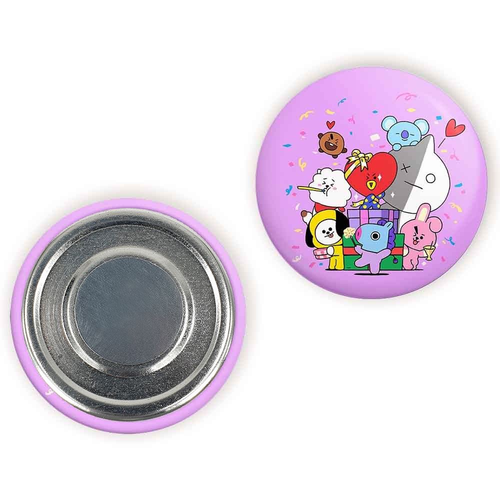 مگنت BT21 خندالو با روکش سلفون مات مخملی ضدخش و قطعه پشتی فلزی تولید شده است که آهنربای اتمی بکار برده شده در محصول، بصورت مخفی تعبیه شده ودیده نمی شود. ضمن اینکه گیرایی بسیار بالایی داشته و به هیچ عنوان از روی یخچال نمی افتد.