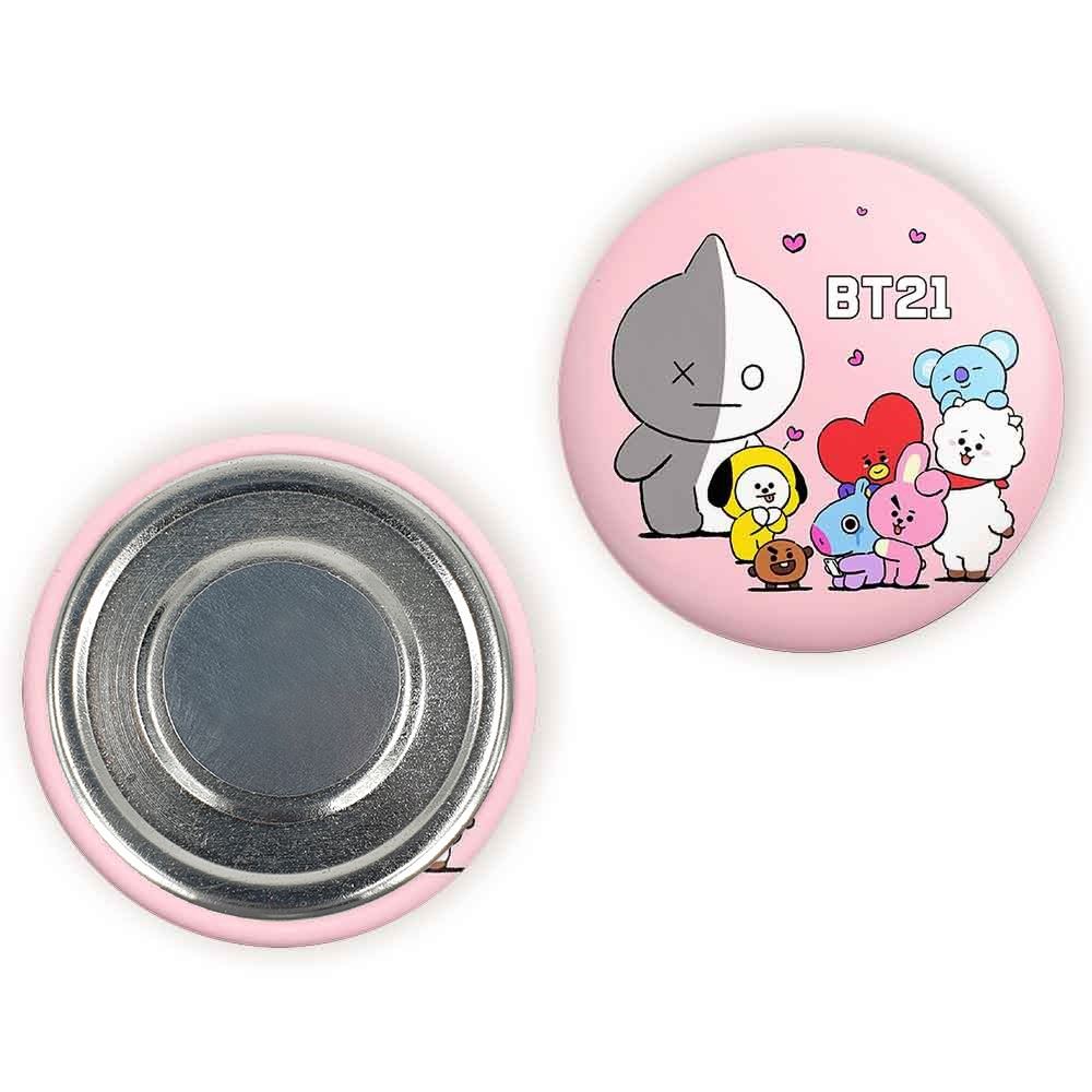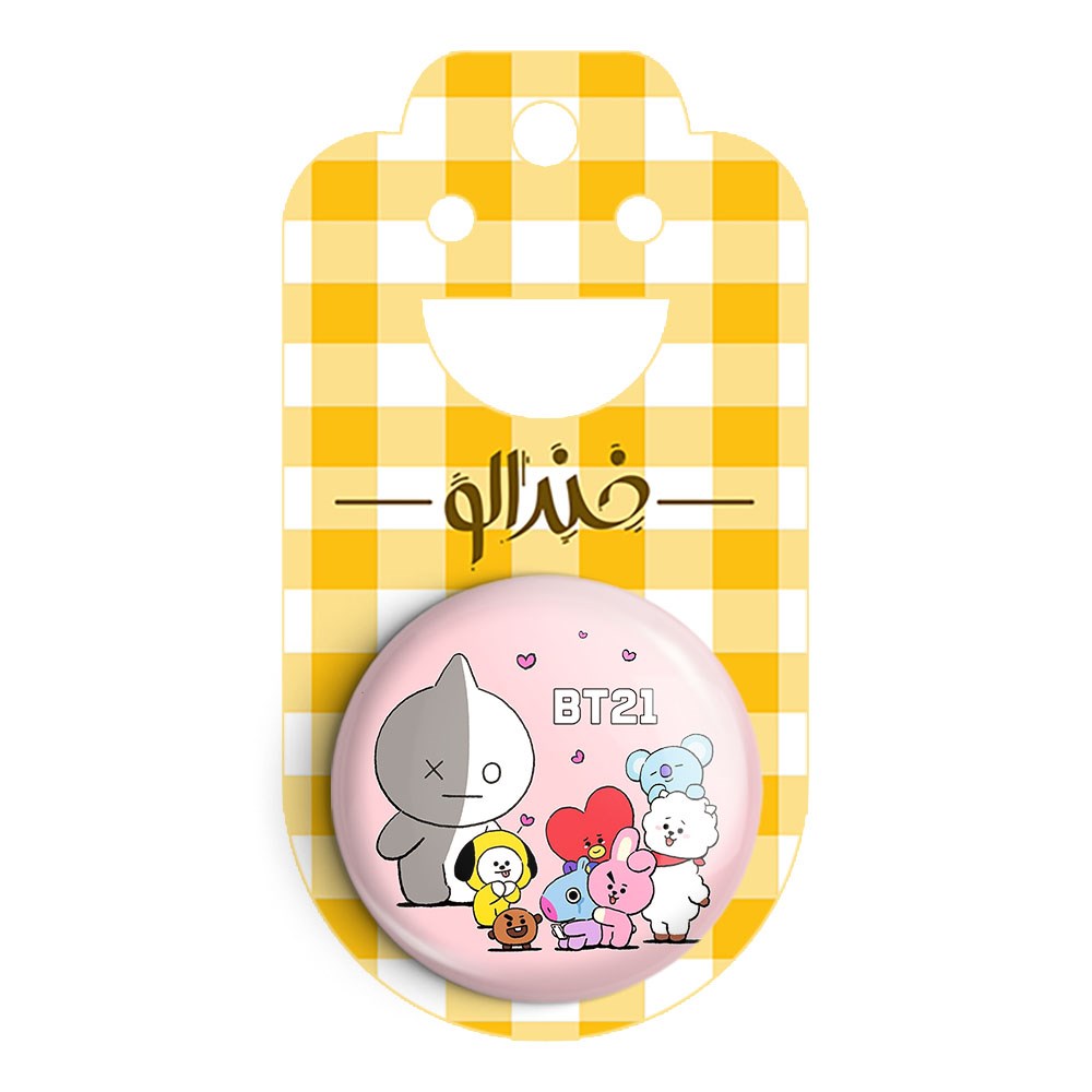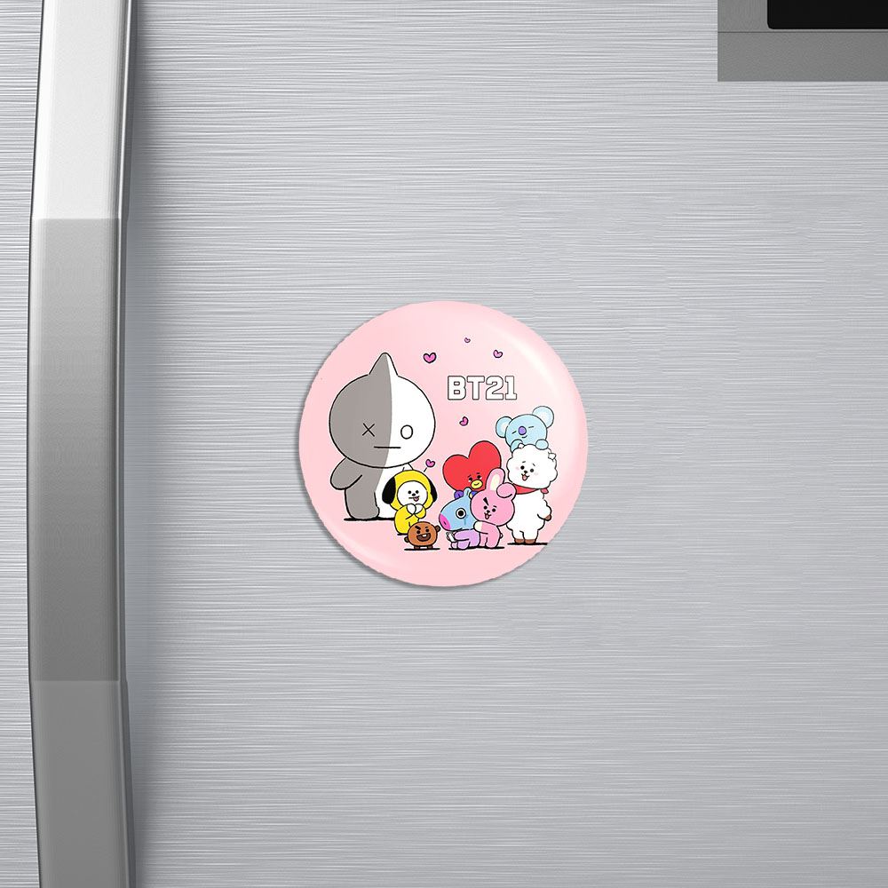 مگنت BT21 خندالو با روکش سلفون مات مخملی ضدخش و قطعه پشتی فلزی تولید شده است که آهنربای اتمی بکار برده شده در محصول، بصورت مخفی تعبیه شده ودیده نمی شود. ضمن اینکه گیرایی بسیار بالایی داشته و به هیچ عنوان از روی یخچال نمی افتد.