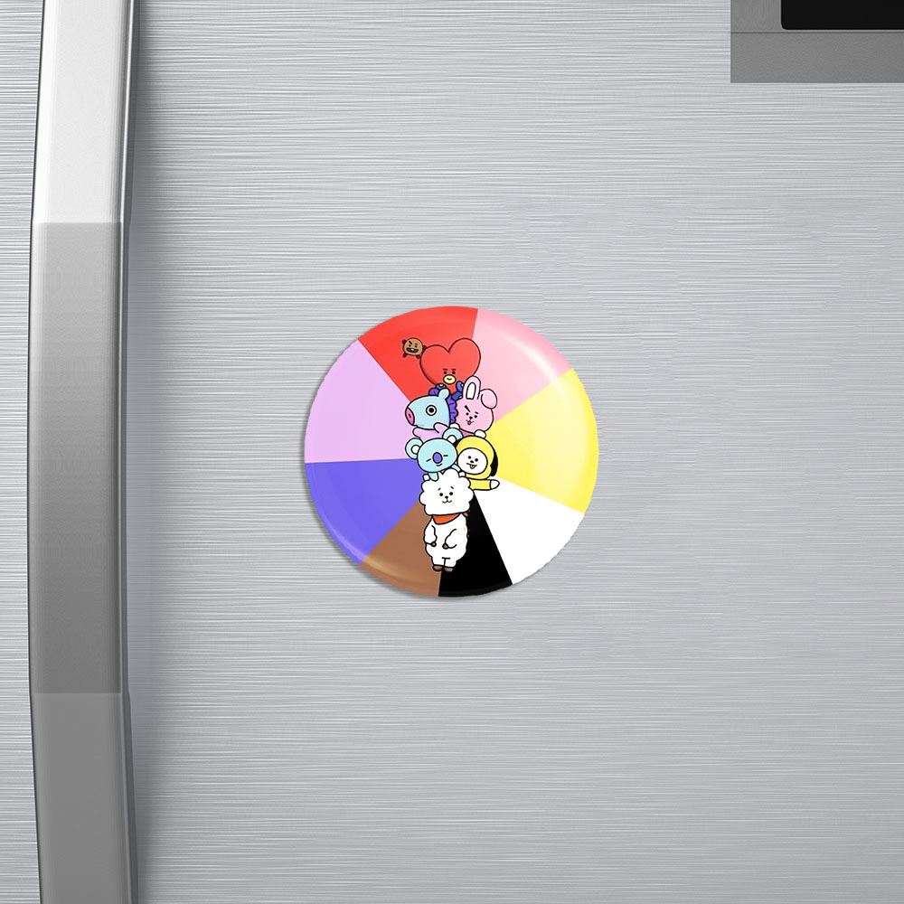 مگنت BT21 خندالو با روکش سلفون مات مخملی ضدخش و قطعه پشتی فلزی تولید شده است که آهنربای اتمی بکار برده شده در محصول، بصورت مخفی تعبیه شده ودیده نمی شود. ضمن اینکه گیرایی بسیار بالایی داشته و به هیچ عنوان از روی یخچال نمی افتد.