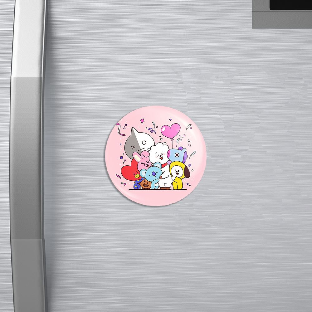 مگنت BT21 خندالو با روکش سلفون مات مخملی ضدخش و قطعه پشتی فلزی تولید شده است که آهنربای اتمی بکار برده شده در محصول، بصورت مخفی تعبیه شده ودیده نمی شود. ضمن اینکه گیرایی بسیار بالایی داشته و به هیچ عنوان از روی یخچال نمی افتد.