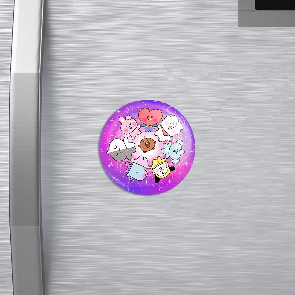 مگنت BT21 خندالو با روکش سلفون مات مخملی ضدخش و قطعه پشتی فلزی تولید شده است که آهنربای اتمی بکار برده شده در محصول، بصورت مخفی تعبیه شده ودیده نمی شود. ضمن اینکه گیرایی بسیار بالایی داشته و به هیچ عنوان از روی یخچال نمی افتد.