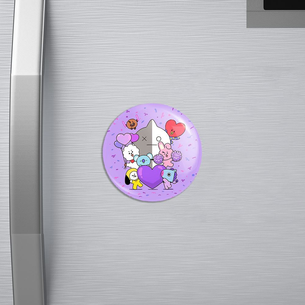 مگنت BT21 خندالو با روکش سلفون مات مخملی ضدخش و قطعه پشتی فلزی تولید شده است که آهنربای اتمی بکار برده شده در محصول، بصورت مخفی تعبیه شده ودیده نمی شود. ضمن اینکه گیرایی بسیار بالایی داشته و به هیچ عنوان از روی یخچال نمی افتد.