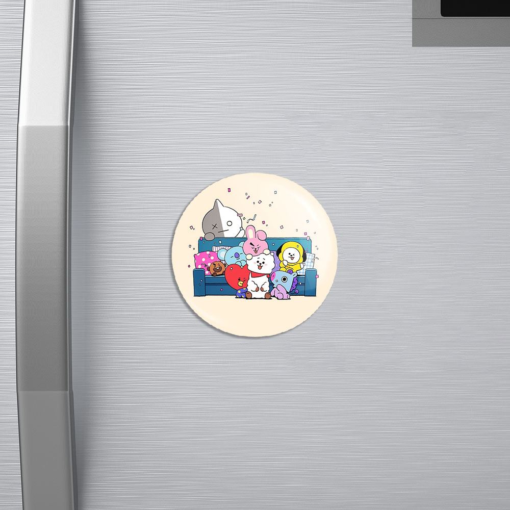 مگنت BT21 خندالو با روکش سلفون مات مخملی ضدخش و قطعه پشتی فلزی تولید شده است که آهنربای اتمی بکار برده شده در محصول، بصورت مخفی تعبیه شده ودیده نمی شود. ضمن اینکه گیرایی بسیار بالایی داشته و به هیچ عنوان از روی یخچال نمی افتد.