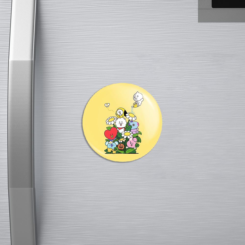 مگنت BT21 خندالو با روکش سلفون مات مخملی ضدخش و قطعه پشتی فلزی تولید شده است که آهنربای اتمی بکار برده شده در محصول، بصورت مخفی تعبیه شده ودیده نمی شود. ضمن اینکه گیرایی بسیار بالایی داشته و به هیچ عنوان از روی یخچال نمی افتد.