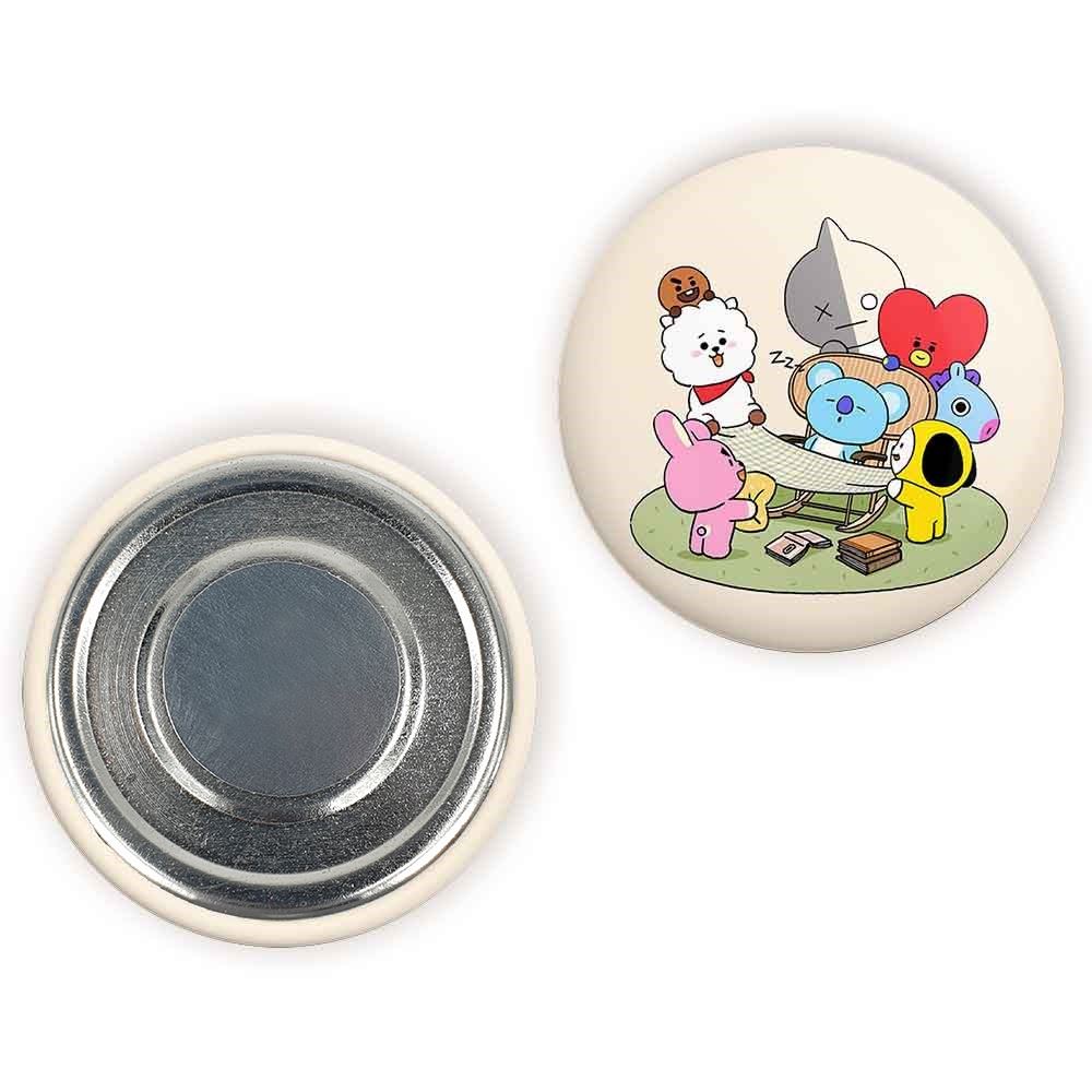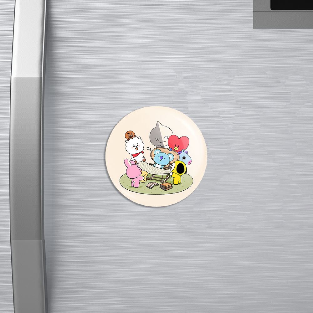 مگنت BT21 خندالو با روکش سلفون مات مخملی ضدخش و قطعه پشتی فلزی تولید شده است که آهنربای اتمی بکار برده شده در محصول، بصورت مخفی تعبیه شده ودیده نمی شود. ضمن اینکه گیرایی بسیار بالایی داشته و به هیچ عنوان از روی یخچال نمی افتد.