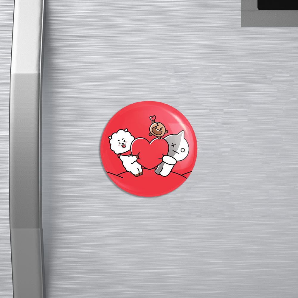 مگنت BT21 خندالو با روکش سلفون مات مخملی ضدخش و قطعه پشتی فلزی تولید شده است که آهنربای اتمی بکار برده شده در محصول، بصورت مخفی تعبیه شده ودیده نمی شود. ضمن اینکه گیرایی بسیار بالایی داشته و به هیچ عنوان از روی یخچال نمی افتد.