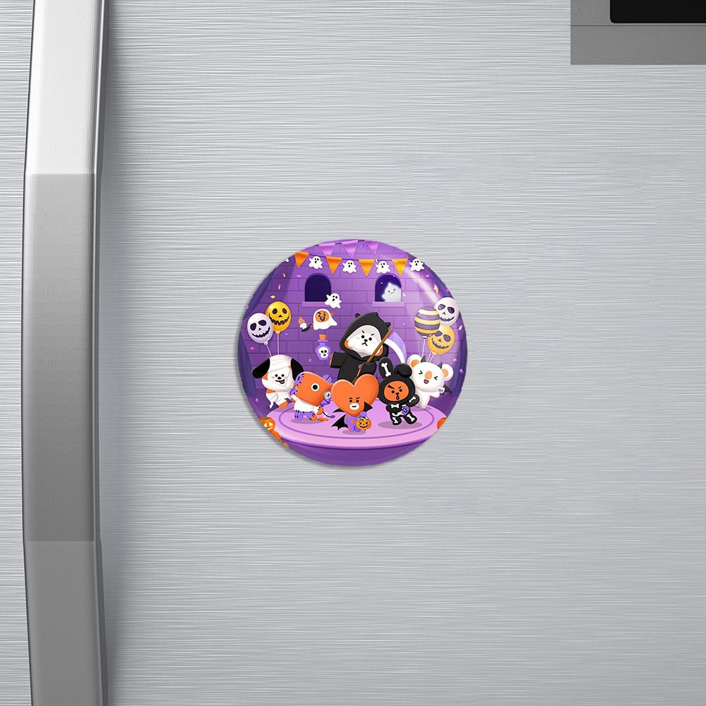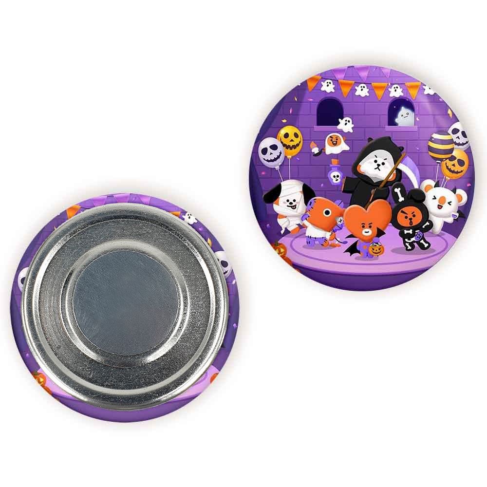 مگنت BT21 خندالو با روکش سلفون مات مخملی ضدخش و قطعه پشتی فلزی تولید شده است که آهنربای اتمی بکار برده شده در محصول، بصورت مخفی تعبیه شده ودیده نمی شود. ضمن اینکه گیرایی بسیار بالایی داشته و به هیچ عنوان از روی یخچال نمی افتد.