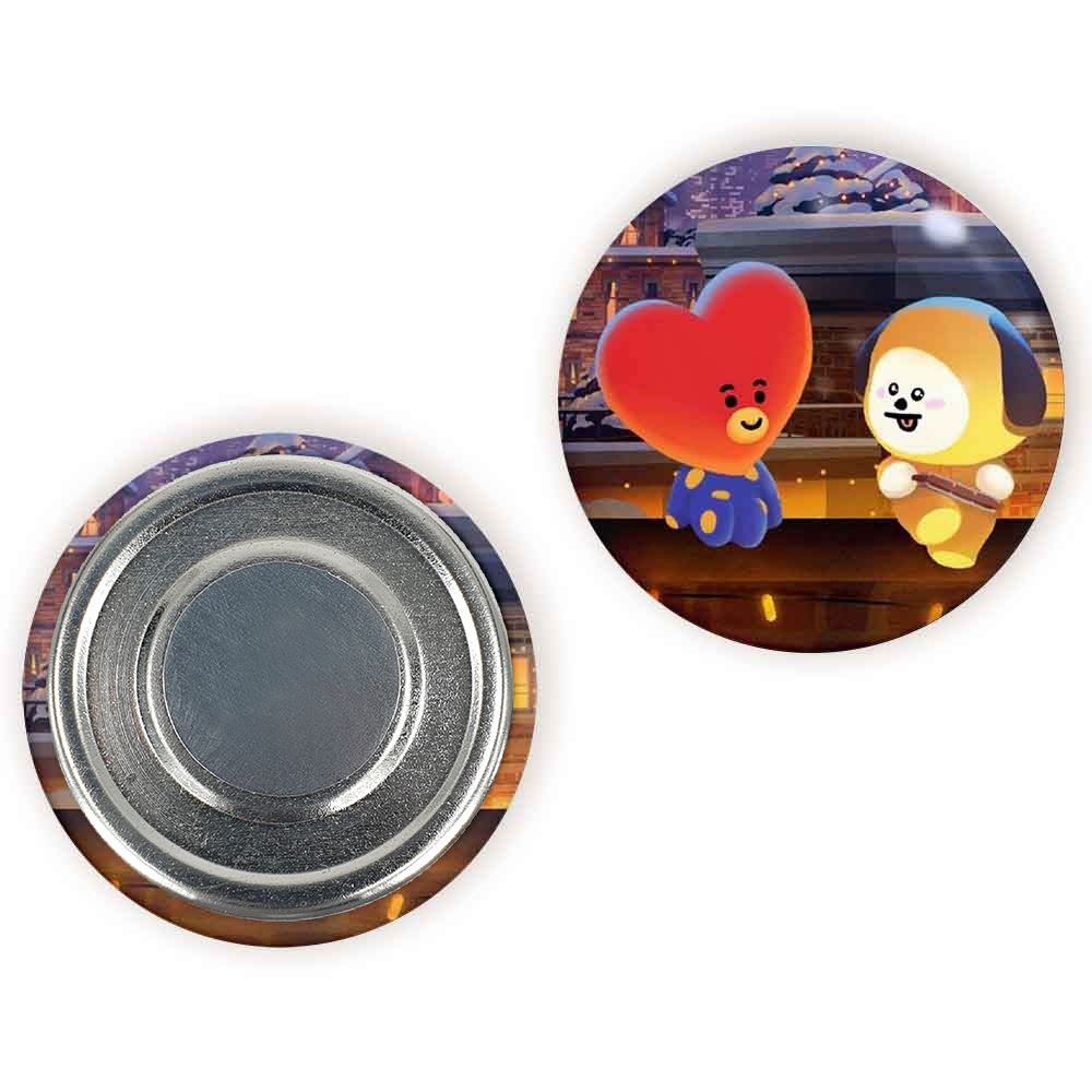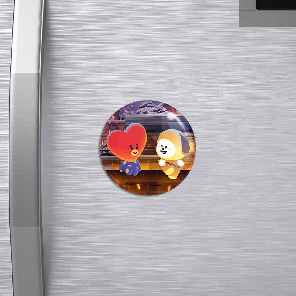 مگنت BT21 خندالو با روکش سلفون مات مخملی ضدخش و قطعه پشتی فلزی تولید شده است که آهنربای اتمی بکار برده شده در محصول، بصورت مخفی تعبیه شده ودیده نمی شود. ضمن اینکه گیرایی بسیار بالایی داشته و به هیچ عنوان از روی یخچال نمی افتد.