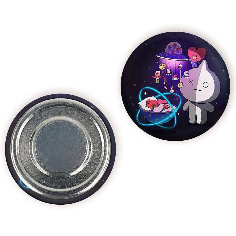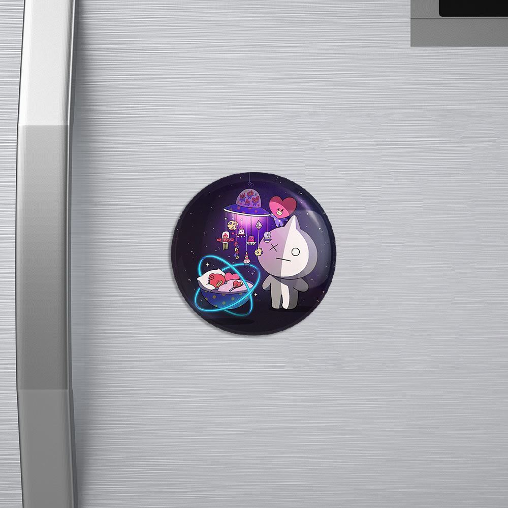 مگنت BT21 خندالو با روکش سلفون مات مخملی ضدخش و قطعه پشتی فلزی تولید شده است که آهنربای اتمی بکار برده شده در محصول، بصورت مخفی تعبیه شده ودیده نمی شود. ضمن اینکه گیرایی بسیار بالایی داشته و به هیچ عنوان از روی یخچال نمی افتد.